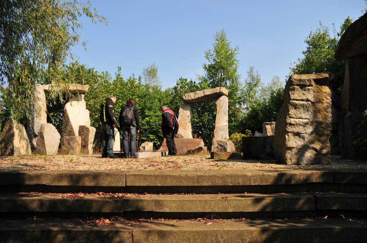 Auf kurvigen, schattigen Pfaden erklimmen wir mit unseren Bikes die Donauanhöhe und sind bereits an den Pforten zum Bayerischen Wald. Dass wir tatsächlich noch nicht drinnen sind, machen Orstnamen wie Kirchberg vorm Wald oder Aicha vorm Wald deutlich klar. Spätestens am Ortseingang vor Fürstenstein haben wir diesbezüglich weiter erhebliche Zweifel: Am Rande eines weitläufigen Natursteinhandels ist ein Stonehenge nachempfundenes Monument errichtet, so, dass wir uns eher auf die „große Insel“ als in den „Woid“ versetzt fühlen.