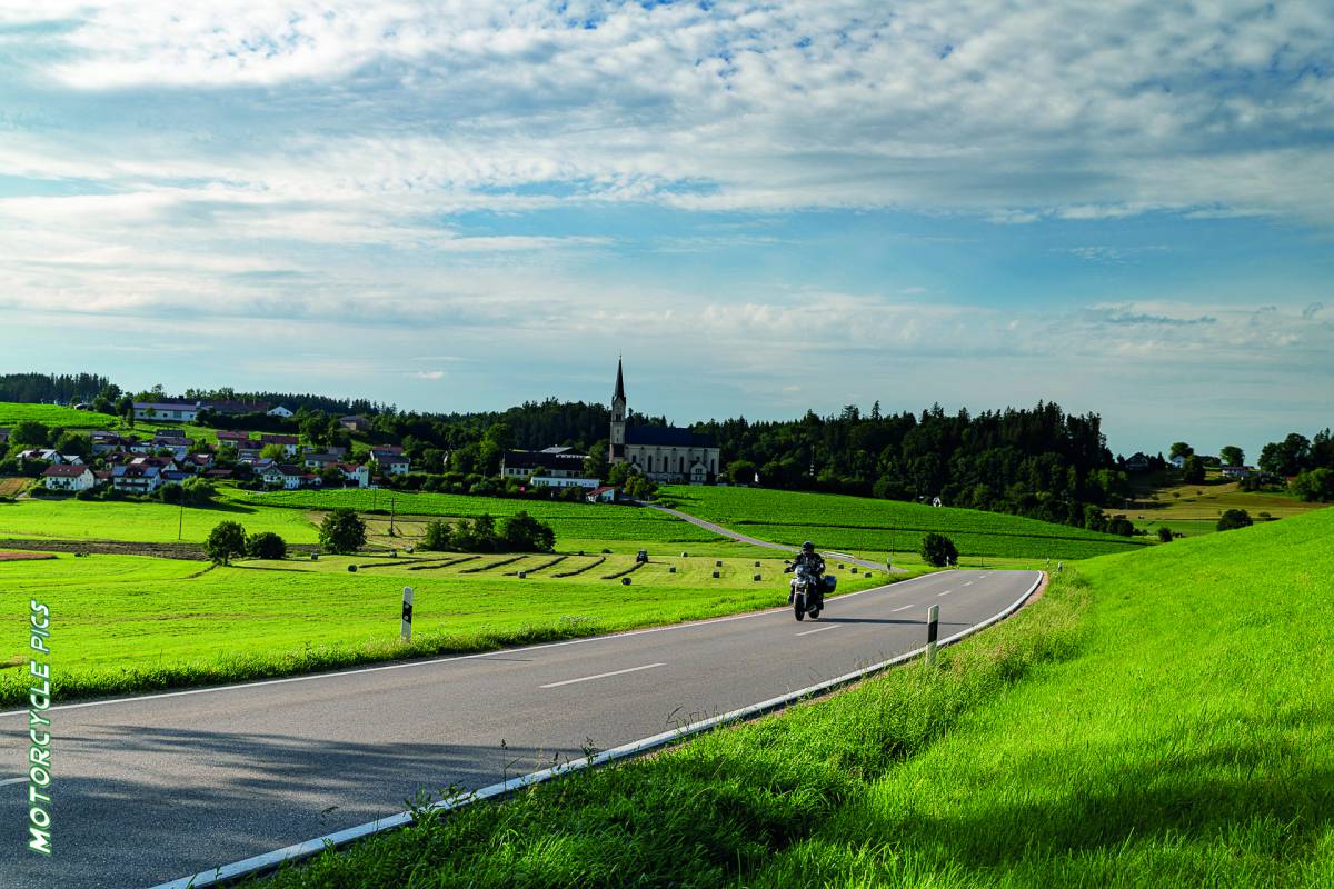 Nach Norden starten wir unseren Tag und peilen als erstes Ziel die Kreisstadt Mühldorf am Inn an. Sie bietet mit ihrem langgezogenen Stadtplatz Genuss fürs Auge, den wir im Vorbeifahren gerne mitnehmen. Wir wollen aber lieber weiter Kurven heizen und streben mehr ins bucklige Links und Rechts. Zangberg liegt auf dem Weg, und kurz vor Lohkirchen biegen wir in die Achterbahn Richtung Buchbach. In Oberbergkirchen haben wir vielleicht das - eher unwahrscheinliche - Glück, und der Ex-MotoGP-Fahrer und jetzige Superbike-WM-Fahrer Jonas Folger läuft uns über den Weg, er wohnt nämlich in diesem verträumten Örtchen.