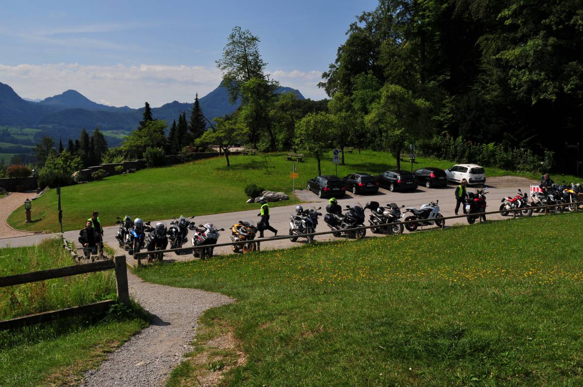 Das kleine Sträßchen entlässt uns auf die Verbindung zwischen Salzburgring und Hallein. Wir ziehen die Salzachstadt vor und lassen uns parallel mit dem Gebirgsfluss treiben, biegen allerdings vor Erreichen der Mozartstadt Salzburg ab und schleichen uns über Glanegg und Fürstenbrunn auf wenig befahrener Route Richtung Marzoll und Großgmain. Dort passieren wir wieder die Grenze und sind zurück in Bayern, wo’s an Weißbach und Piding vorbei zum Högl geht. Hier haben wir mit der Neubichler und der Stoblalm sowie dem Klosterwirt in Höglwörth gleich mehrere Möglichkeiten auf engstem Raum, um neuerlich was für unser leibliches Wohl zu tun.
